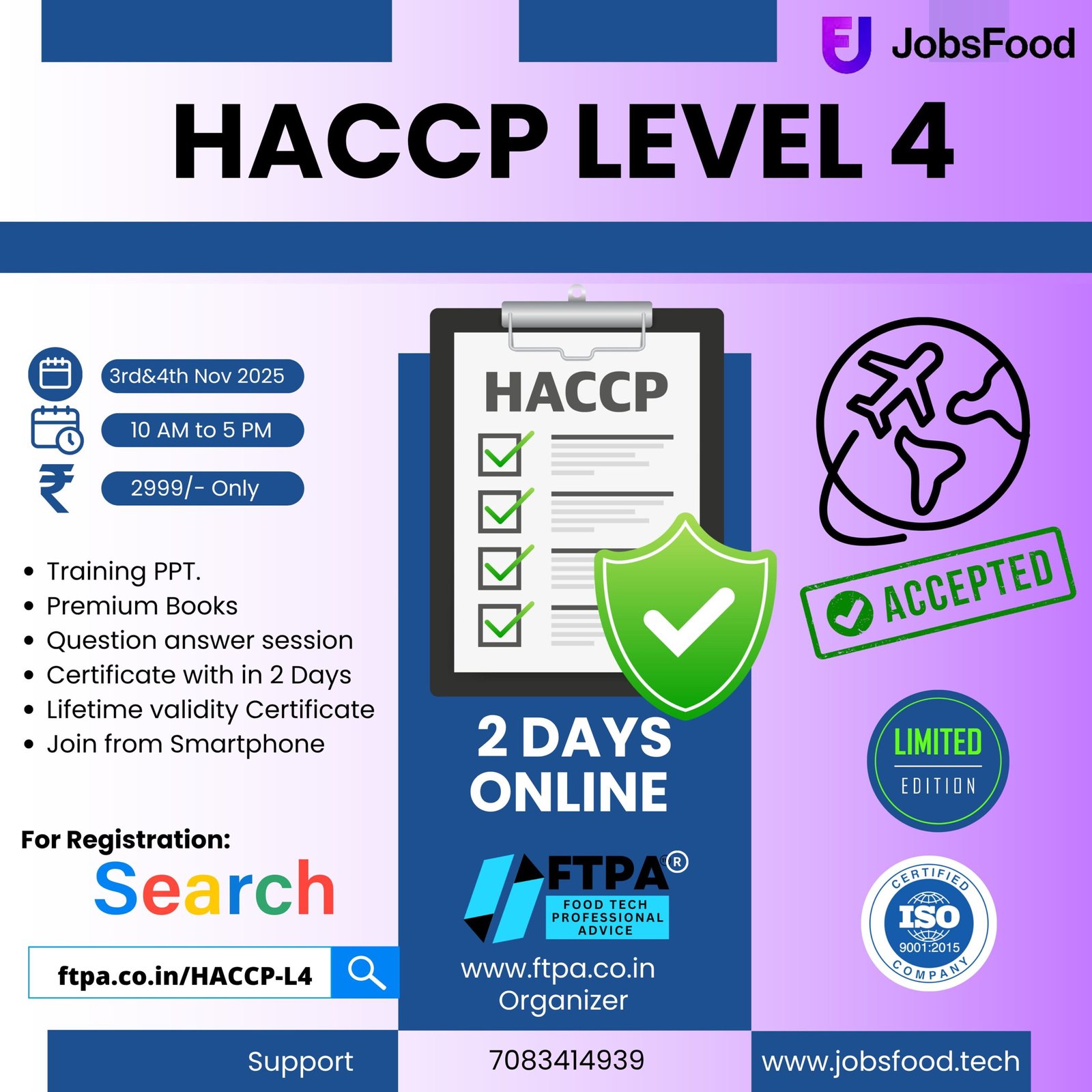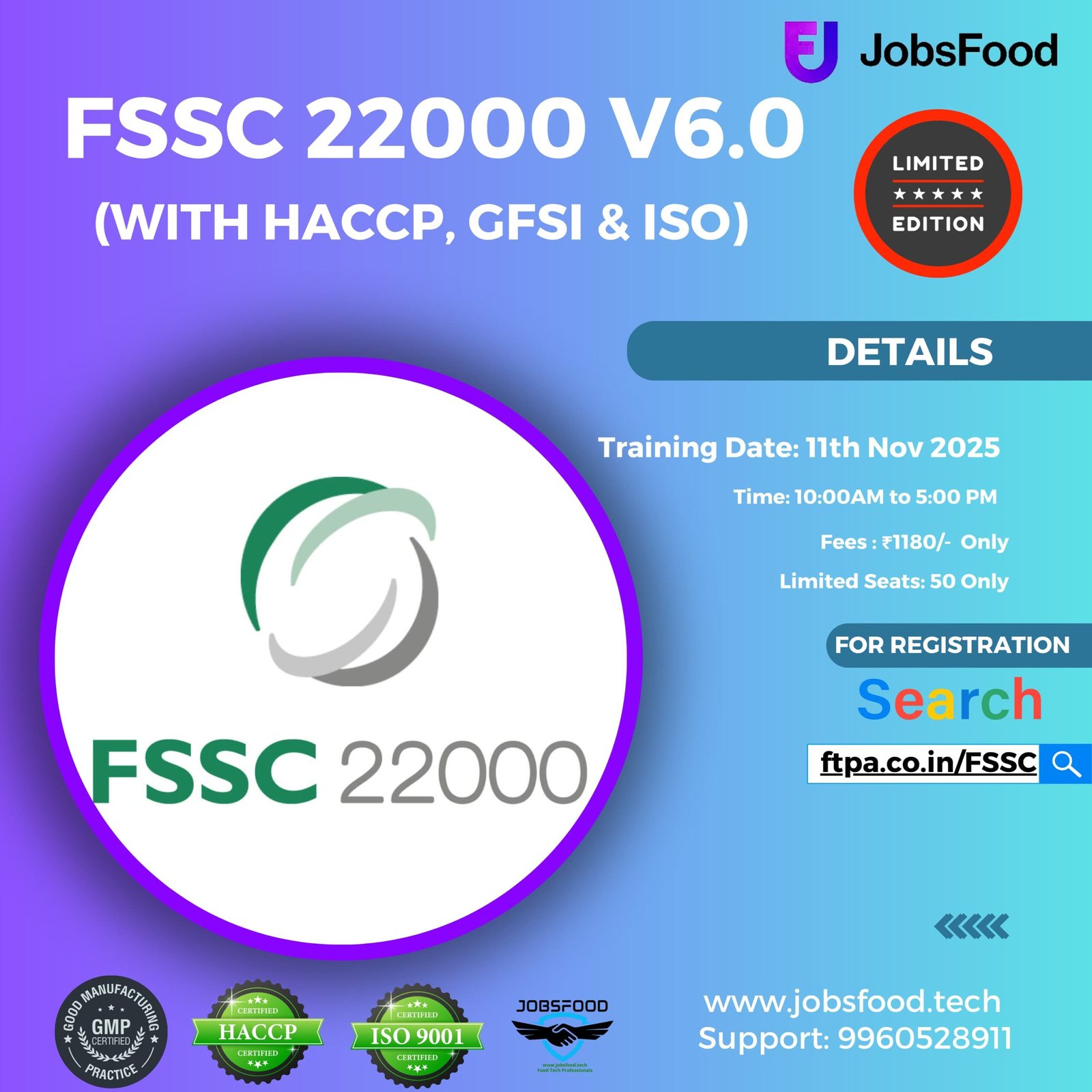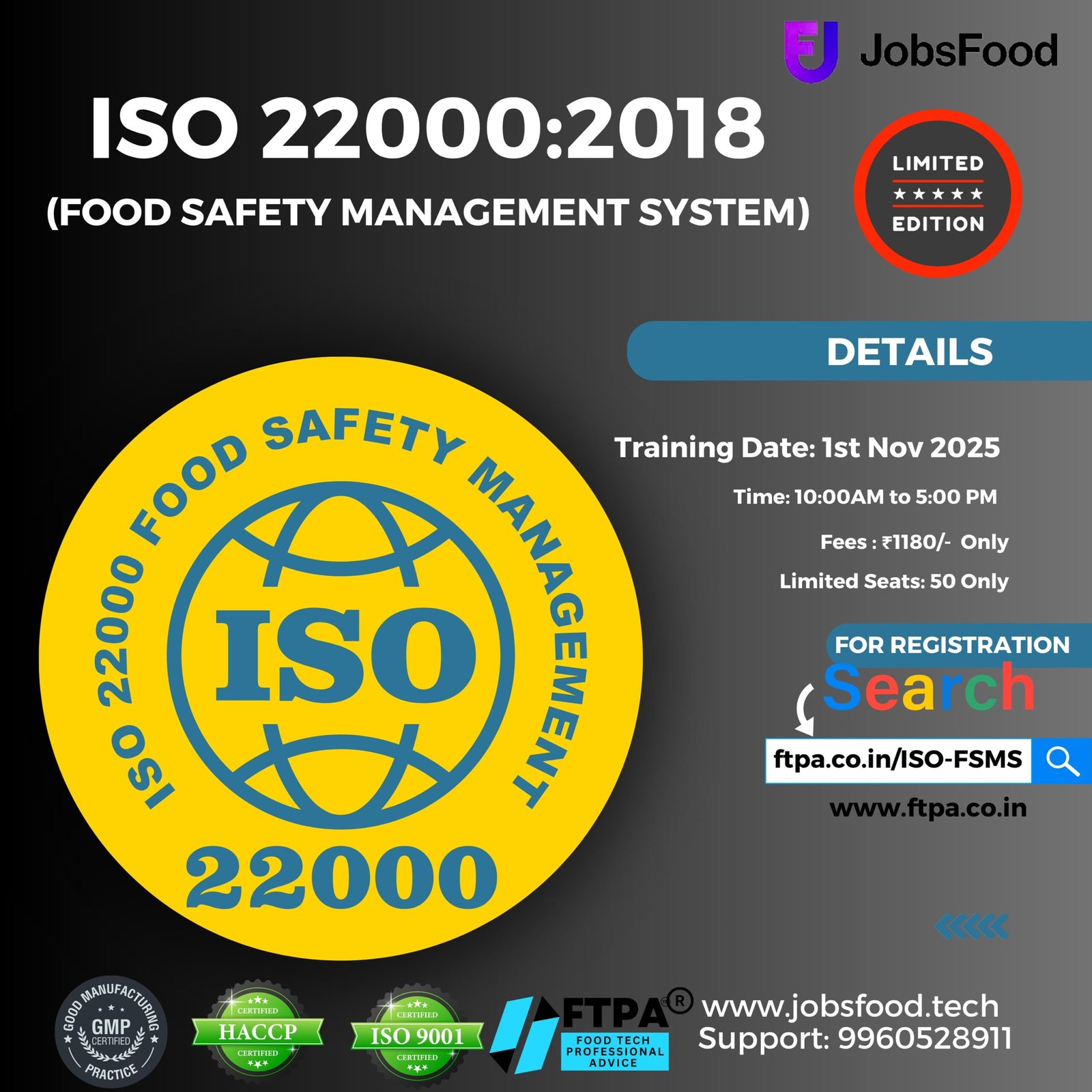 Degree in B.Tech/B.E/M.E/MS/M.Tech/Post Graduate in Food Technology/Chemical Engg/Biotech.