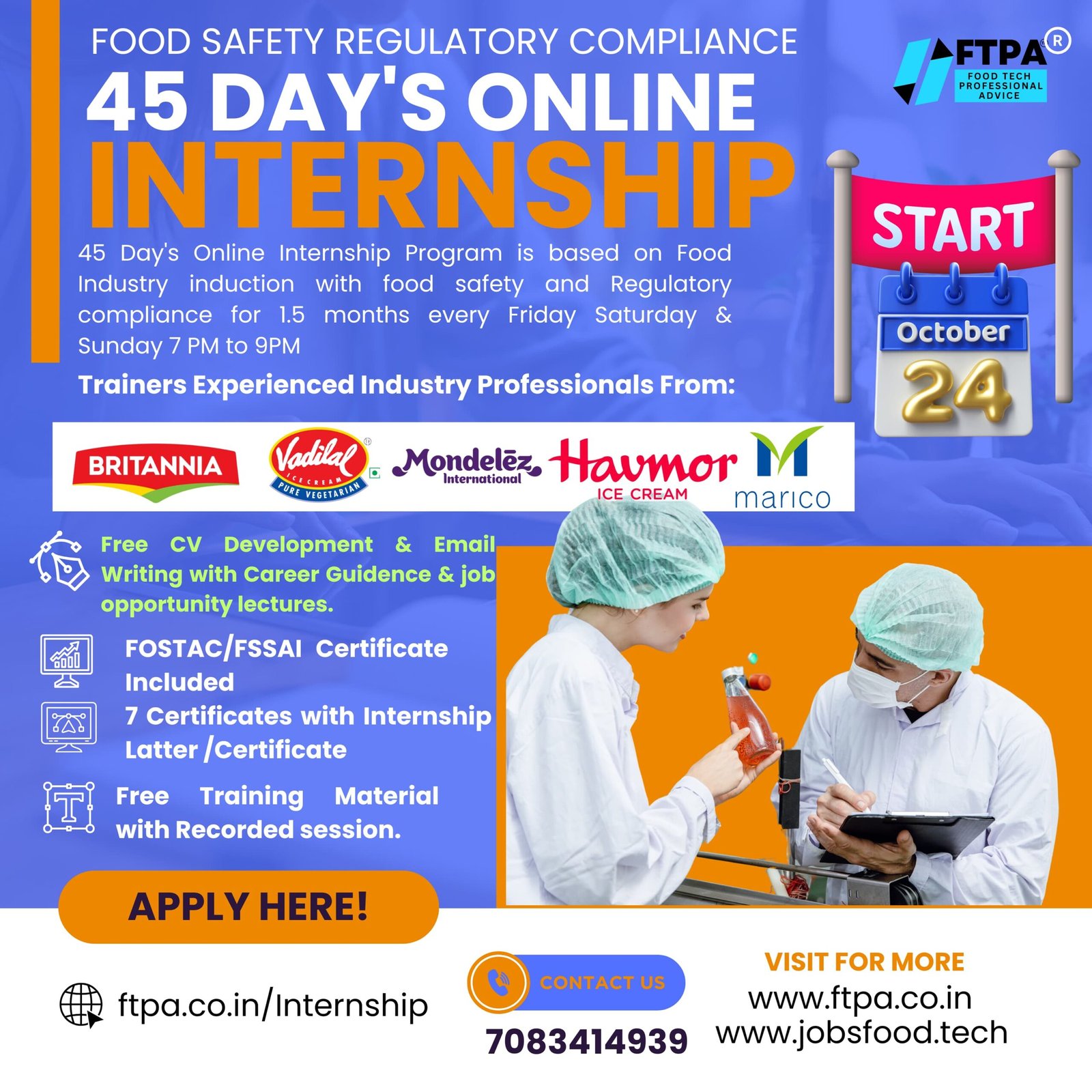 Apply for Food technologist internship