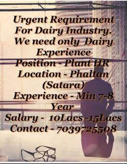 Vacancy for Dairy plant HR | Satara | Maharashtra October 11, 2020 by Food Tech Professionals Vacancy for Dairy plant HR | Satara | Maharashtra
