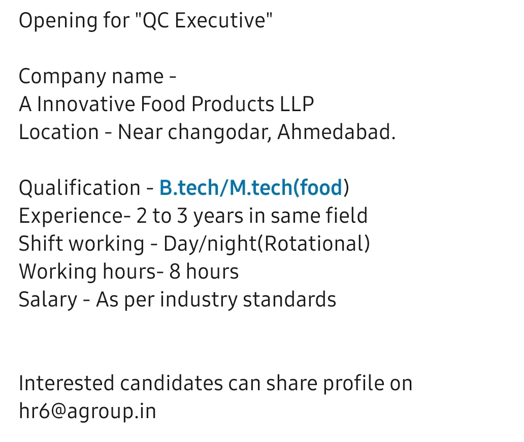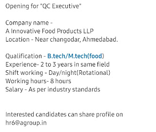 Vacancy for Quality Executive October 9, 2020 by Food Tech Professionals Vacancy for Quality ExecutiveEmail address: hr6@agroup.in